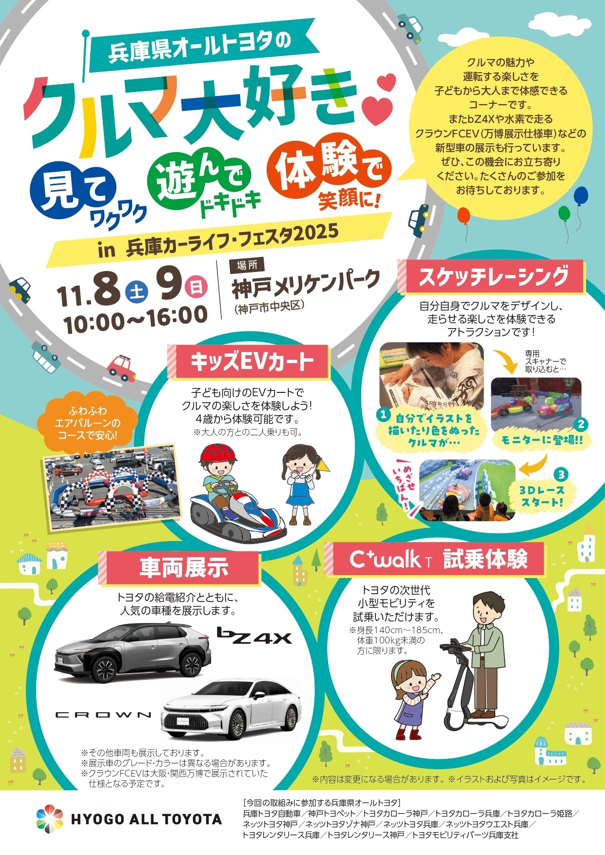 兵庫カーライフ・フェスタ2025 2025.10.17 ♢兵庫県オールトヨタ 11月のイベント情報♢ 『兵庫カーライフ・フェスタ2025』 開催日:11月8日(土)・9日(日) 時間:10:00~16:00 場所:神戸メリケンパーク 兵庫県オールトヨタのブースでは、 ☑キッズEVカート🚗 ☑スケッチレーシング✍ ☑試乗体験 ☑車両展示 楽しいコンテンツをご用意しております🎈 たくさんのご参加をお待ちしております✨ 前の記事へ ZONA WORLD一覧に戻る 次の記事へ