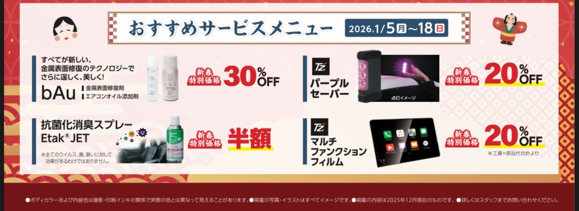 また、おすすめのサービスメニューが1/5(月)~1/18(日)の期間限定で