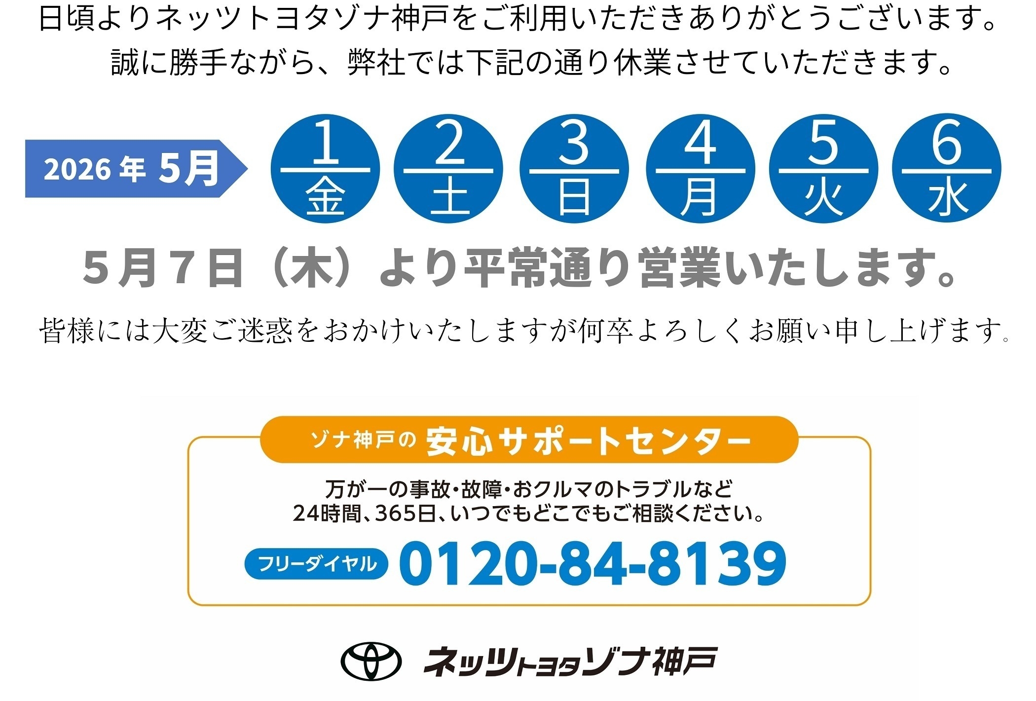 ゴールデンウイーク休業日のお知らせです📢